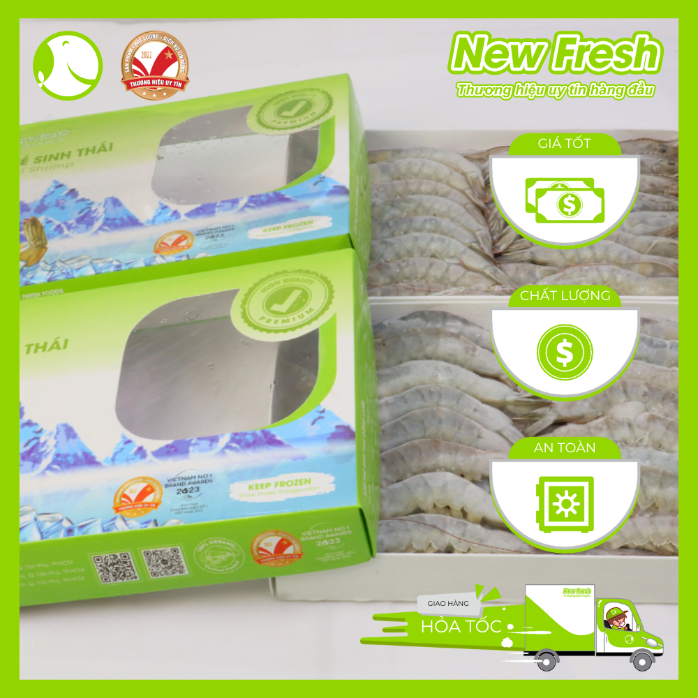- Hướng dẫn sử dụng: hấp, nướng, lẩu,… Đặc điểm của Tôm Thẻ Sinh Thái Tôm Thẻ Sinh Thái được nuôi dưỡng nhiều nhất ở Việt Nam và rất được ưu chuộng trong các bữa cơm trong gia đình. Với thịt chắc, hương vị thơm ngon, ngọt mà còn có giá trị dinh dưỡng rất là cao. Tôm được nuôi tự nhiên, hoàn toàn không sử dụng thức ăn công nghiệp, không dư lượng kháng sinh. Vì thế, tôm thẻ sinh thái rất tươi ngon, cho thịt chắc và ngọt thích hợp để làm nhiều món ăn ngon. Tôm thẻ sinh thái được New Fresh Foods cấp đông từ hàng sống theo tiêu chuẩn xuất khẩu, đảm bảo giữ chất lượng của tôm đạt mức cao nhất. Giá trị dinh dưỡng Chứa ít calo nhưng lại cung cấp rất nhiều chất dinh dưỡng như Protein, Vitamin B12, sắt, canxi, Omega 3, Tôm thẻ cung cấp canxi cho cơ thể, giúp cấu tạo nên mô xương, giúp hệ xương chắc khỏe. Chứa omega – 3, giúp chống lại cảm giác mệt mỏi, trầm cảm, đẩy lùi quá trình lão hóa. Tôm thẻ chứa nhiều vitamin B12 hỗ trợ quá trình chuyển hóa năng lượng cho cơ thể. Cung cấp lượng sắt an toàn cho cơ thể. Thường xuyên ăn tôm thẻ sẽ giúp ngăn chặn sự phát triển của các tế bào ung thư một cách hiệu quả.