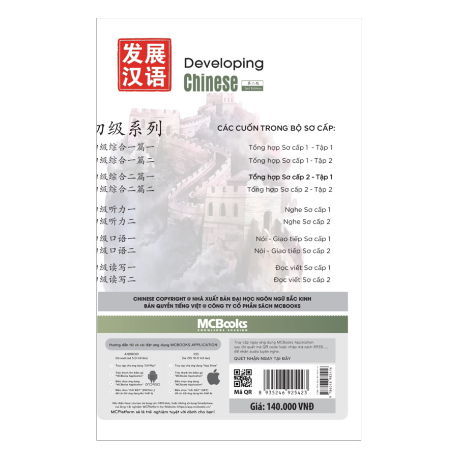 “Giáo trình Phát triển Hán ngữ tổng hợp sơ cấp 2 – Tập 1” nằm trong Bộ Giáo trình Phát triển Hán ngữ, đây là Bộ giáo trình chính thống được biên soạn bởi các chuyên gia hàng đầu về Giáo dục Hán ngữ Quốc tế của Trường Đại học Ngôn ngữ Bắc Kinh – đơn vị số một trong lĩnh vực nghiên cứu và giảng dạy tiếng Trung Quốc cho người nước ngoài, được ứng dụng giảng dạy rộng rãi tại các trường học của Trung Quốc và hiện đang được một số trường ĐH ở Việt Nam sử dụng. Với những cập nhật về tư duy dạy và học tiên tiến nhất, cũng như nội dung và hình thức mang tính ứng dụng cao, phù hợp với xã hội hiện đại, “Giáo trình Phát triển Hán ngữ” giúp bạn nhanh chóng tự Phát triển tiếng Trung một cách có hệ thống và hiệu quả, để bạn có thể SỬ DỤNG GIAO TIẾP và có đủ hệ thống kiến thức và năng lực THI HSK.