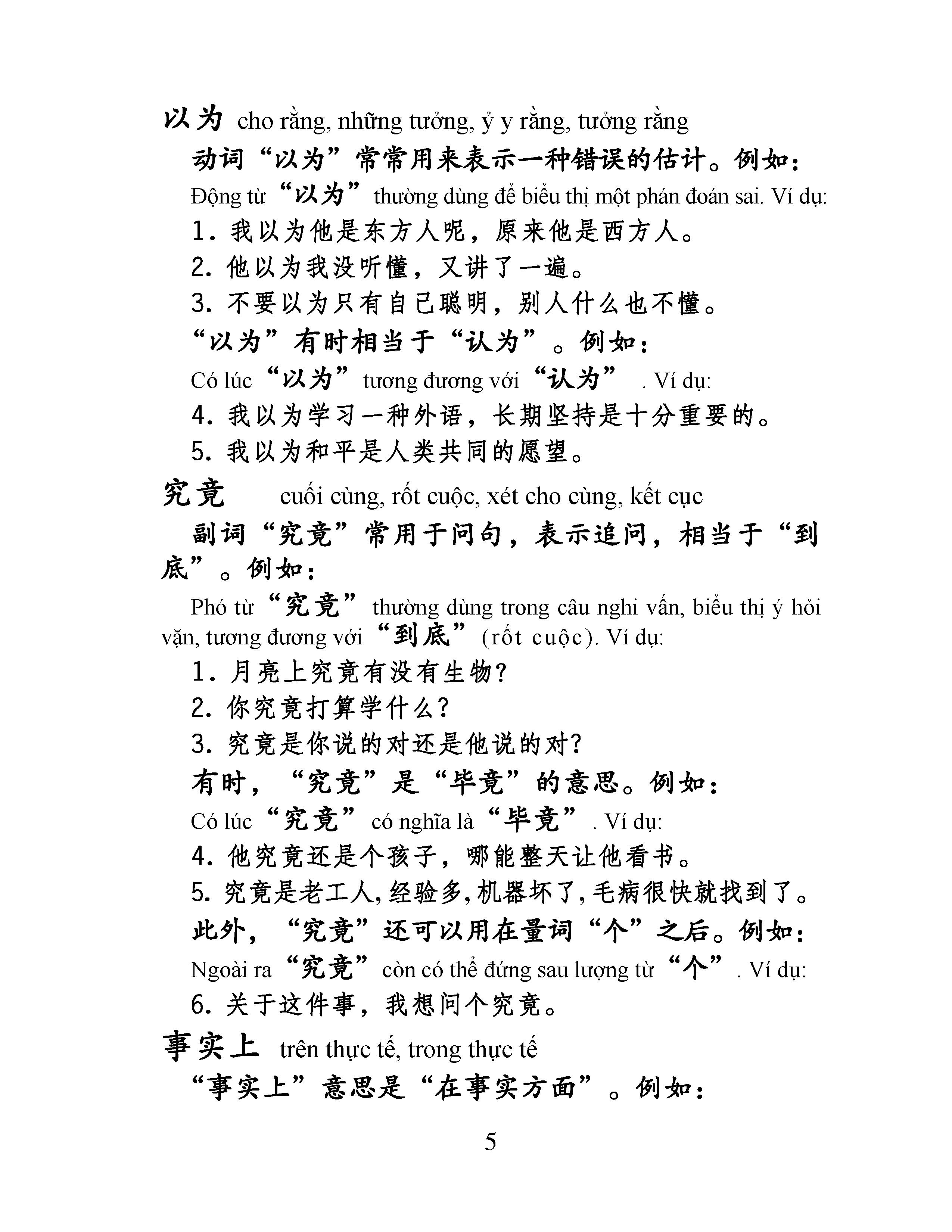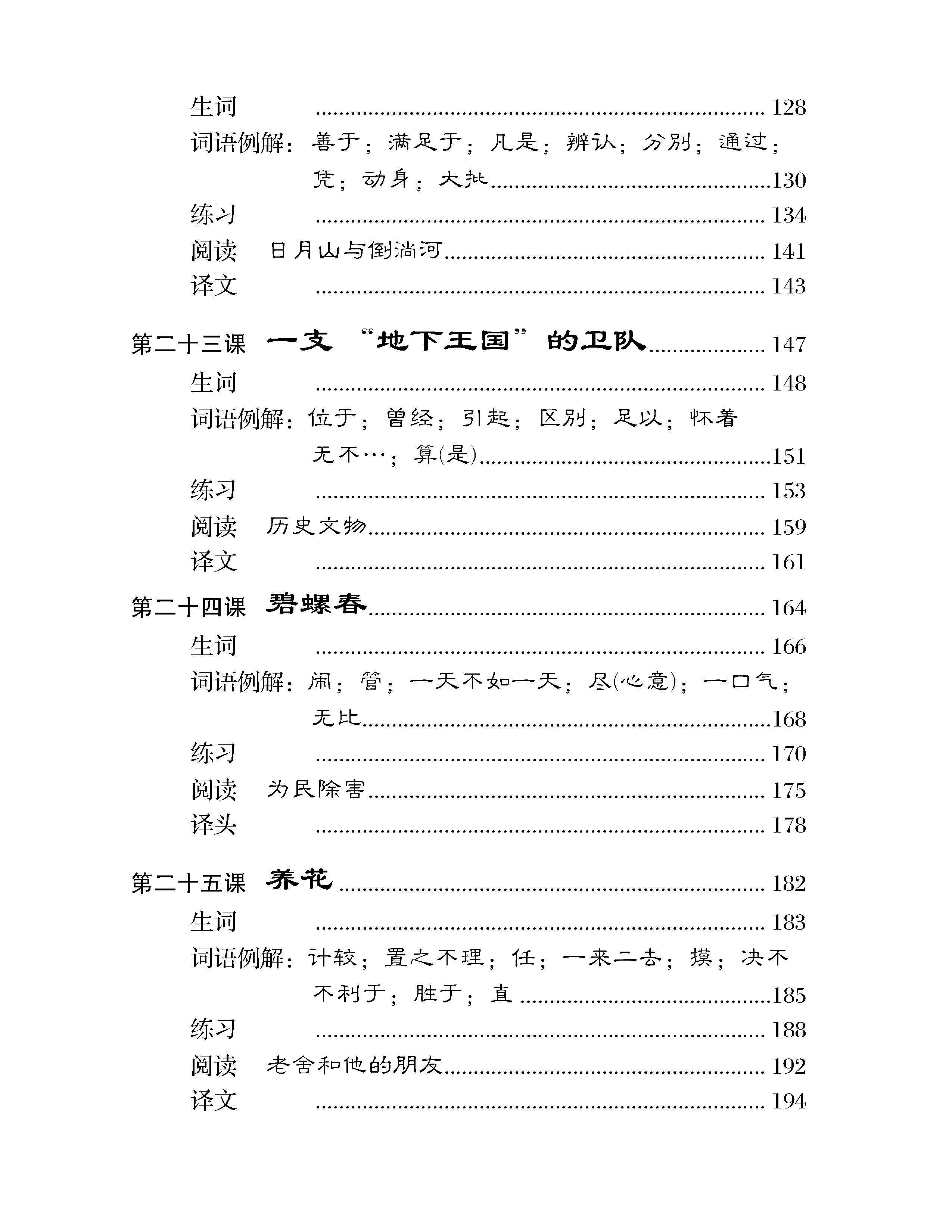 Ngoài ra, để giúp người học củng cố, bổ sung và hệ thống lại các nội dung ngữ pháp đã học trong chương trình sơ trung cấp, khi biên dịch tài liệu này, chúng tôi soạn thêm phần “Ôn tập ngữ pháp” theo hình thức tiểu kết sau mỗi bài. Để người học có thể đối chiếu bài làm, bài dịch của mình, chúng tôi có bổ sung thêm ở cuối sách phần “Đáp án bài tập” và “Bản dịch các bài đọc”. Sách còn có “Bảng từ vựng”, “Bảng danh từ riêng”, “Bảng từ ngữ được giải thích” giúp người học thuận lợi hơn trong việc tra cứu.