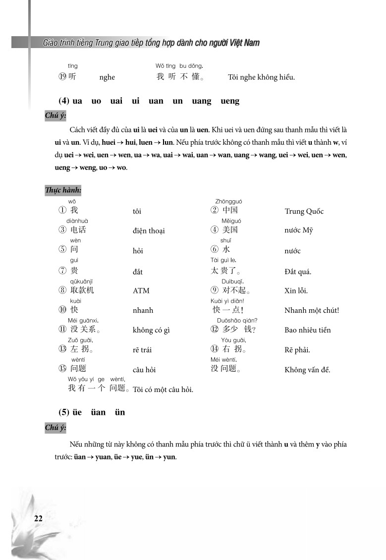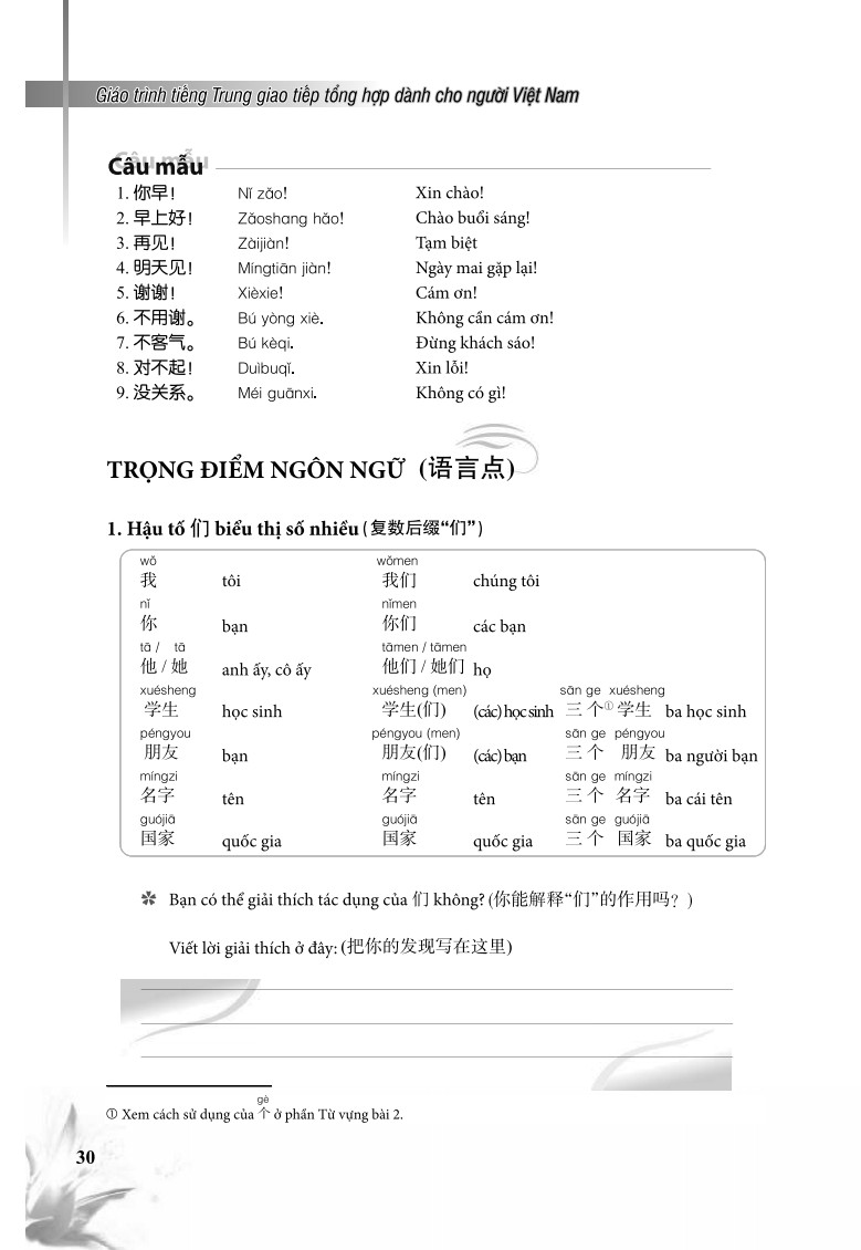Giáo trình tiếng Trung Giao tiếp tổng hợp dành cho người Việt Nam Cuốn sách Giáo Trình Tiếng Trung Giao Tiếp Tổng Hợp Dành Cho Người Việt Nam có 15 bài, mỗi bài gồm: