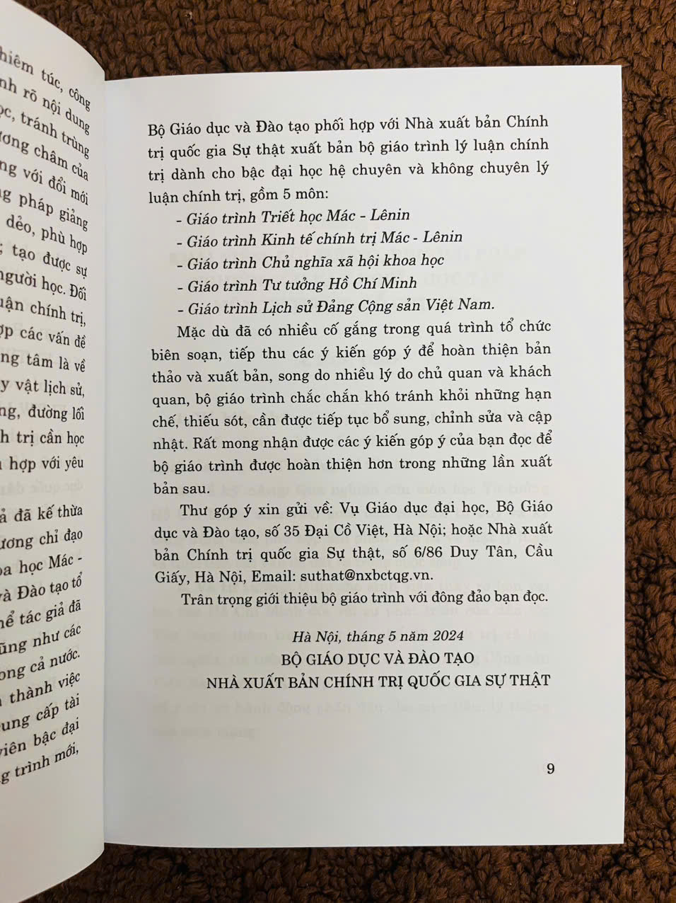 Bộ giáo trình lý luận chính trị gồm 5 cuốn dành cho bậc đại học hệ không chuyên lý luận chính trị. Bộ sách là tài liệu giảng dạy, học tập cho giảng viên, sinh