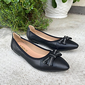 - Giày búp bê da bò mũi nhọn đế bằng Trường Hải da mềm màu đen GBB125 CÓ DÁNG FORM chuẩn ôm chân