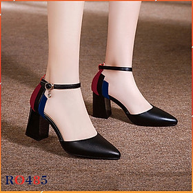 Giày cao gót nữ đẹp đế vuông 6 phân hai màu đen da hàng hiệu rosata ro315