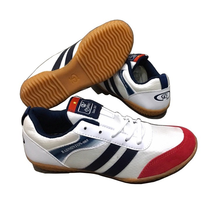 Giày cầu lông 085 màu trắng-navy Chất liệu: Vải, Cao su, Da tổng hợp. Độ cao: từ 7 - 10 cm. Giới tính sử dụng: Nam & nữ. Giày cầu lông 085 mang đến sự thoải mái và