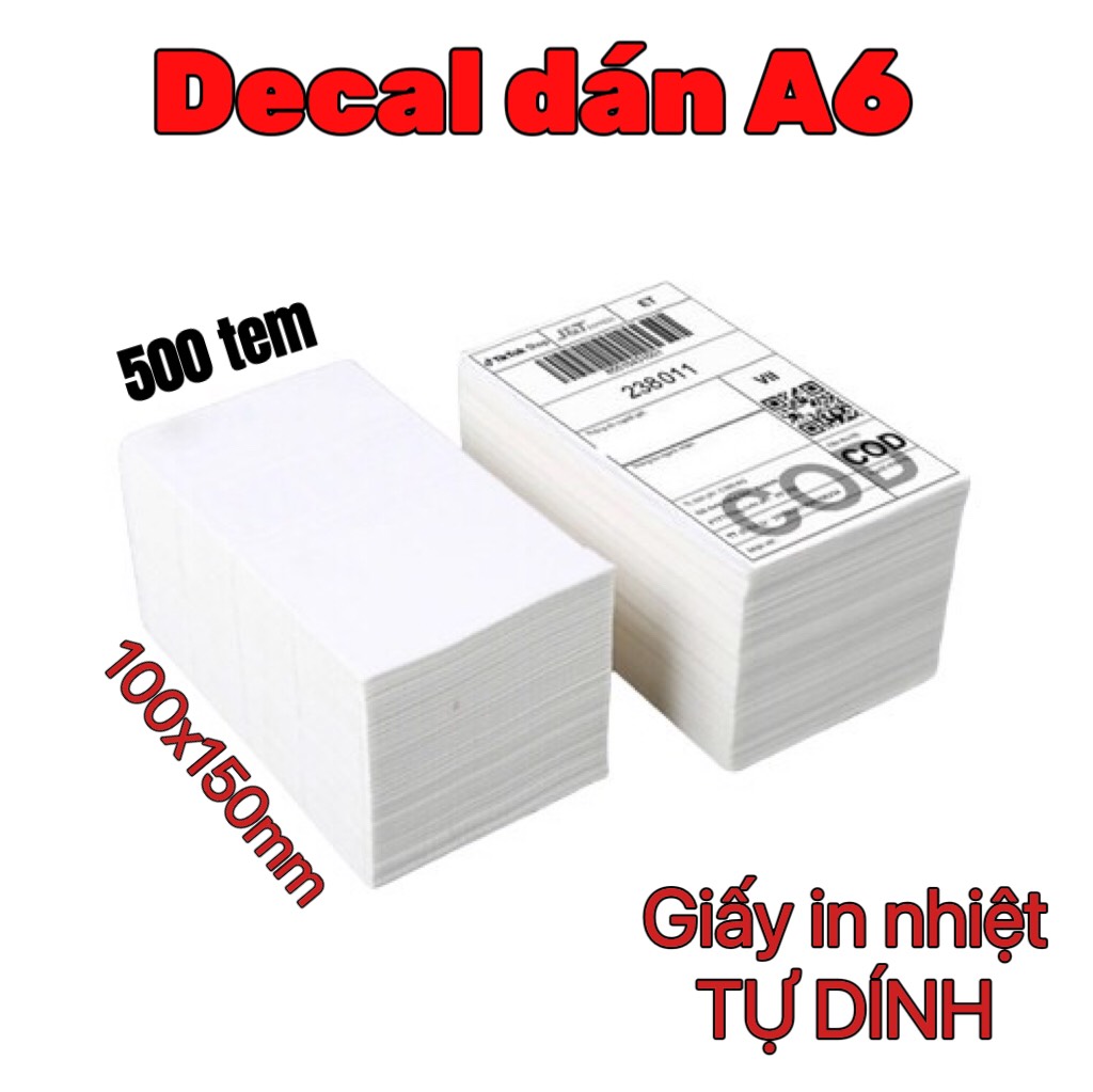 ✨Giấy In Nhiệt, Decal Khổ A6 100x150 mm Tệp 500 tem TỰ DÍNH IN ĐƠN HÀNG TMĐT - 1 tệp - Hàng chính hãng