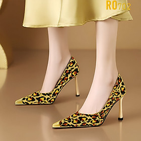 MÔ TẢ SẢN PHẨM: Giày nữ cao gót họa tiết beo ROSATA RO702 -8p- Beo - HÀNG VIỆT NAM - BKSTORE