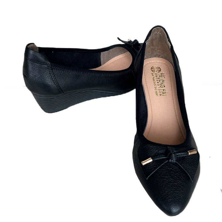 Giày đế xuồng 5cm bigsize hở mũi Trường Hải da bò thật