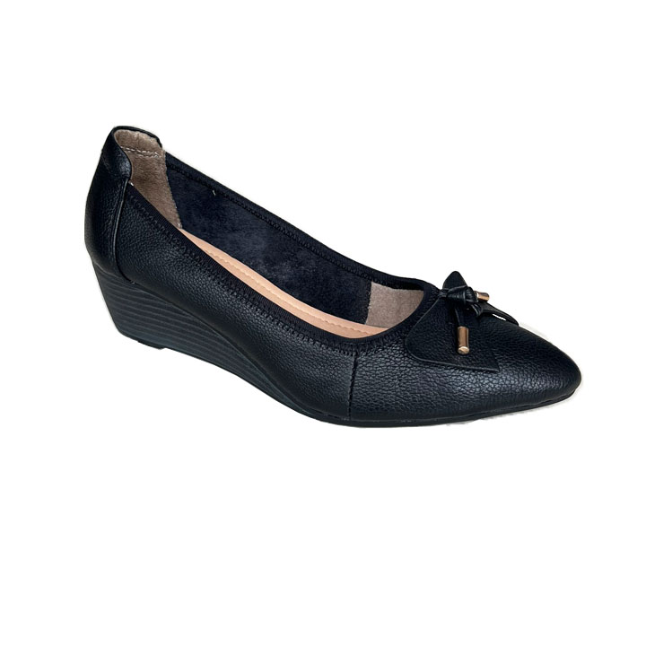 - Giày nữ mũi nhọn Đế Xuồng 5cm Da Bò đính nơ xinh xắn Màu Đen Trường Hải DX117Đ Hàng gia công đường may chắc chắn, Dáng form ôm gọn đôi chân