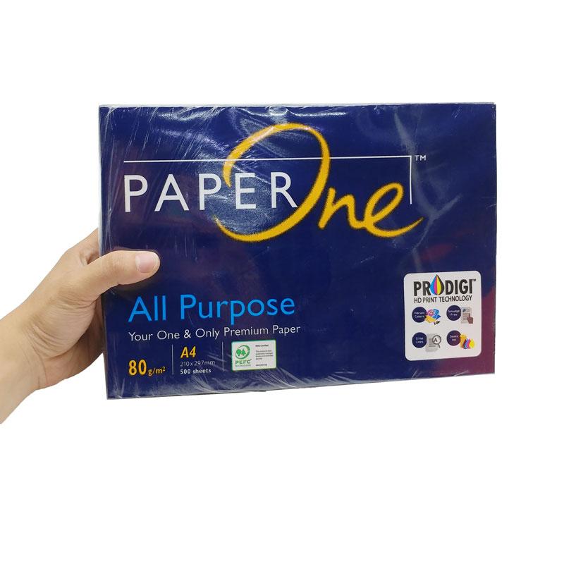 Giấy Paper One định lượng 80A4, là loại giấy có độ trắng cao, mặt giấy láng và rất mịn in hai mặt mà không bị nhăn và lem mực,sắc nét cao, không bụi, khổ giấy