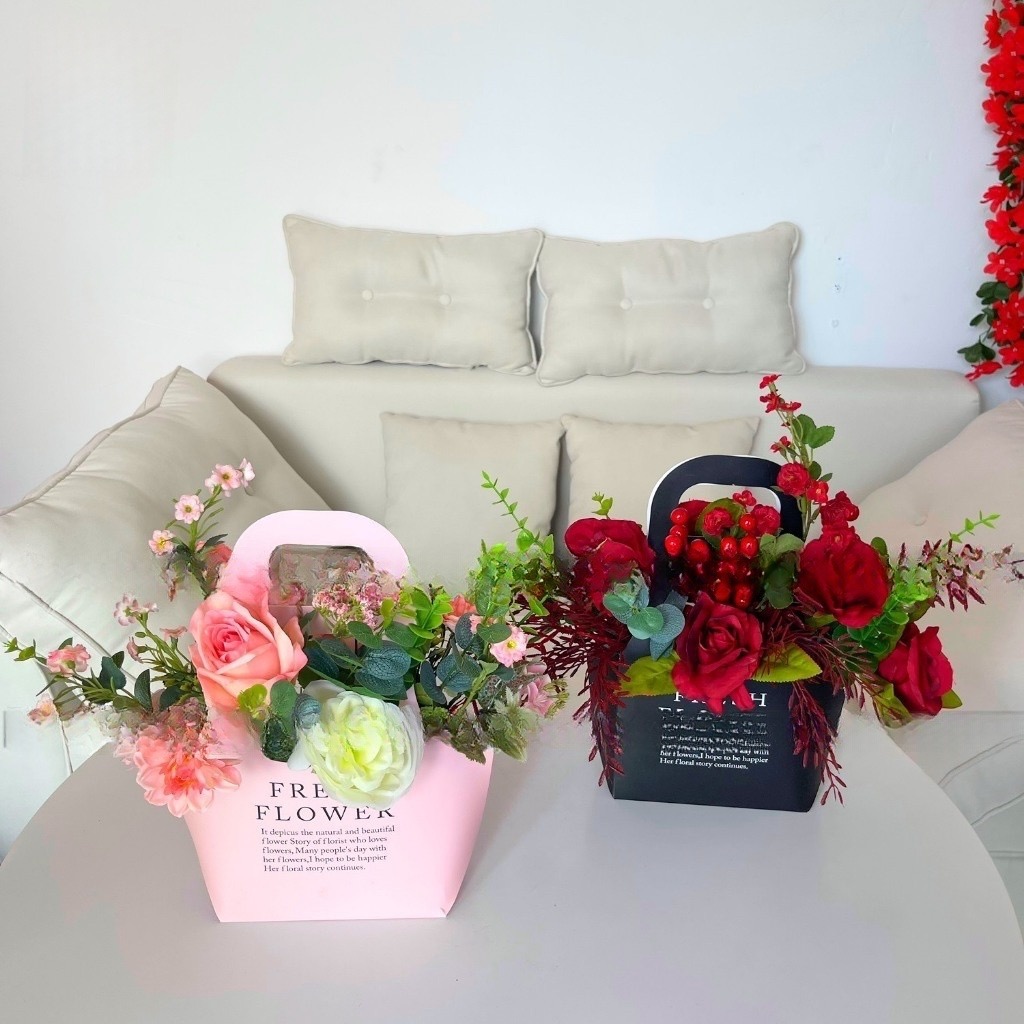 Chậu cây trang trí để bàn kèm giỏ y hình các loại - Cao 35cm đến 48cm - Cây giả, hoa lụa Decor trang trí nhà cửa. ƯU ĐIỂM SẢN PHẨM : - Lựa chọn