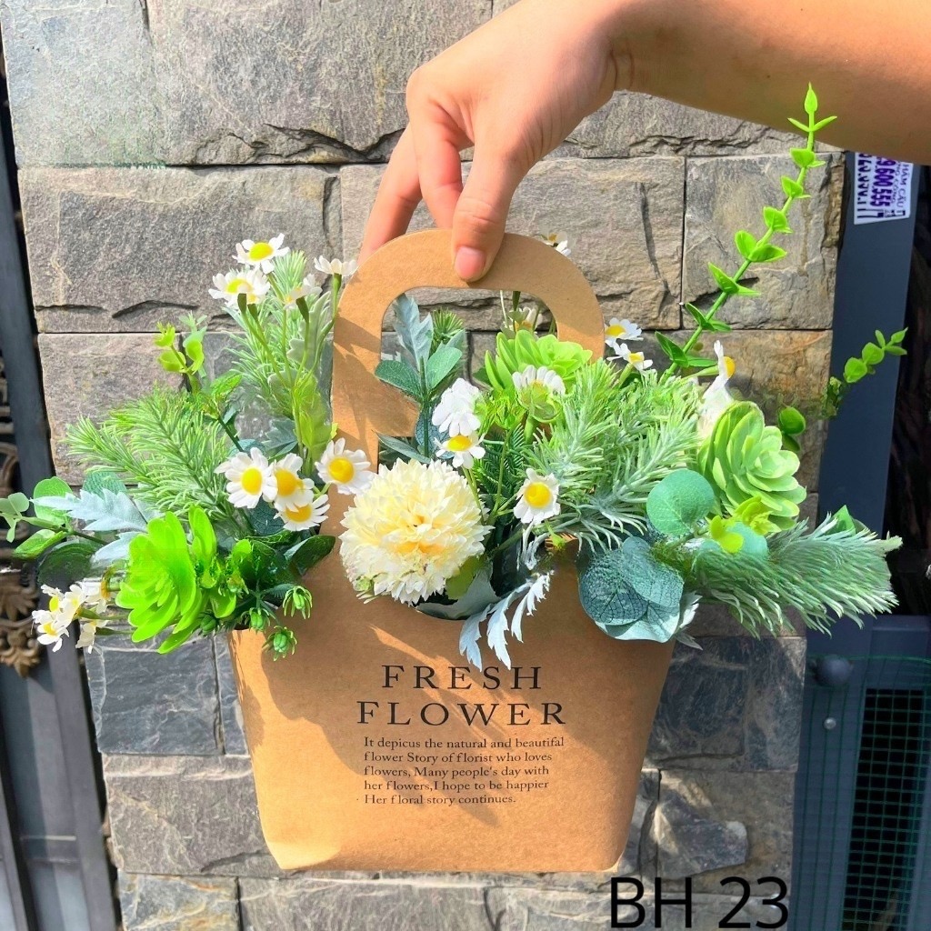 Giỏ hoa hàng rào gỗ dài 50cm cắm sẵn nhiều mẫu hoa giả, cây cảnh trang trí nhà cửa, ban công, tiểu cảnh Khi cần trang trí không gian nội thất căn hộ, ban