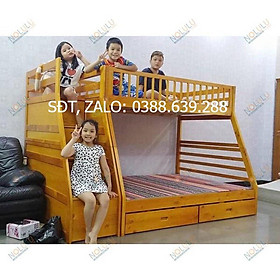 giường gỗ 2 tầng có nhiều ngăn kéo cho bé