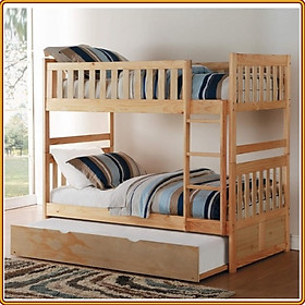 Thông tin sản phẩm: Sản phẩm chỉ bao gồm giường 2 tầng và cầu thang, không kèm các phụ kiện khác. - Chất liệu gỗ thông lâu năm nhập khẩu Canada bền bỉ, an toàn