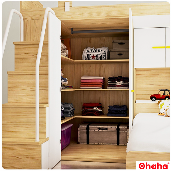 Thông tin sản phẩm: Sản phẩm chỉ bao gồm giường 2 tầng và cầu thang, không kèm các phụ kiện khác. - Chất liệu gỗ thông lâu năm nhập khẩu Canada bền bỉ, an toàn