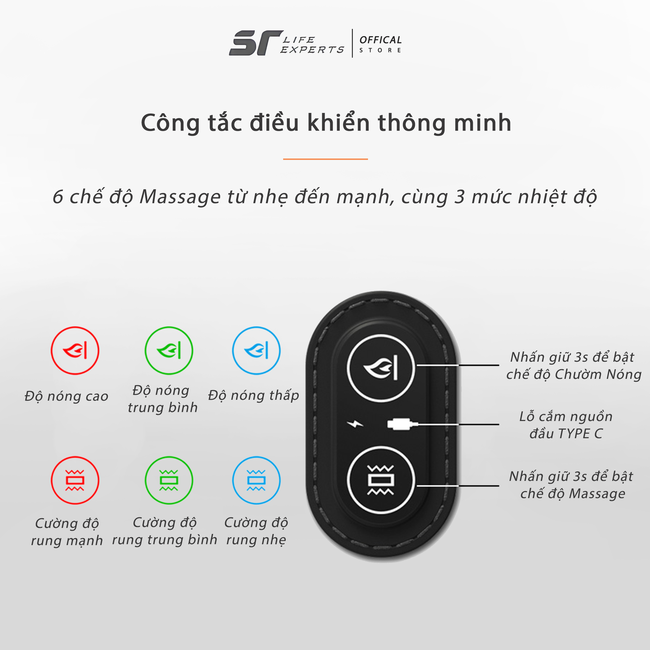 - Chườm nóng 3 mức độ, giảm đau sâu vùng thắt lưng.