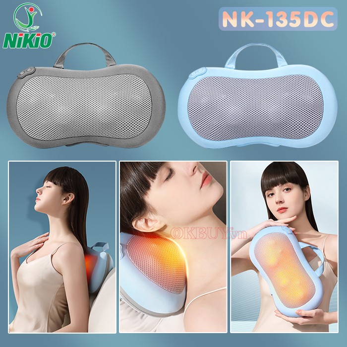 ✨Gối Massage Hồng Ngoại, Máy Mát Xa Cổ Vai Gáy, Matxa Toàn Thân Nikio NK-135DC - Công Nghệ Xoa Bóp Chuyên Sâu, Sưởi Ấm Hồng Ngoại - Pin sạc