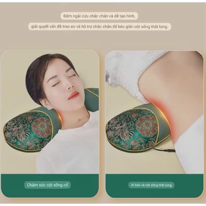 Gối ngải cứu sưởi ấm bằng điện bảo vệ cột sống cổ vai gáy
