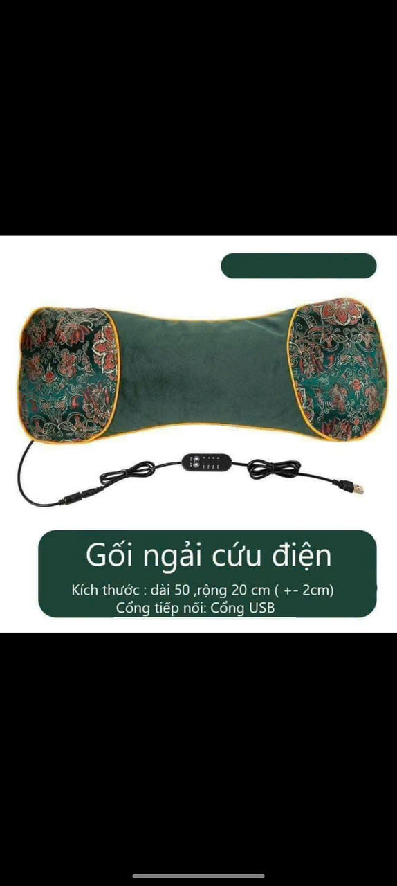 Gối ngải cứu thảo mộc, cắm điện làm nóng, giúp thư giãn vùng cổ vai gáy, dễ dàng đi vào giấc ngủ
