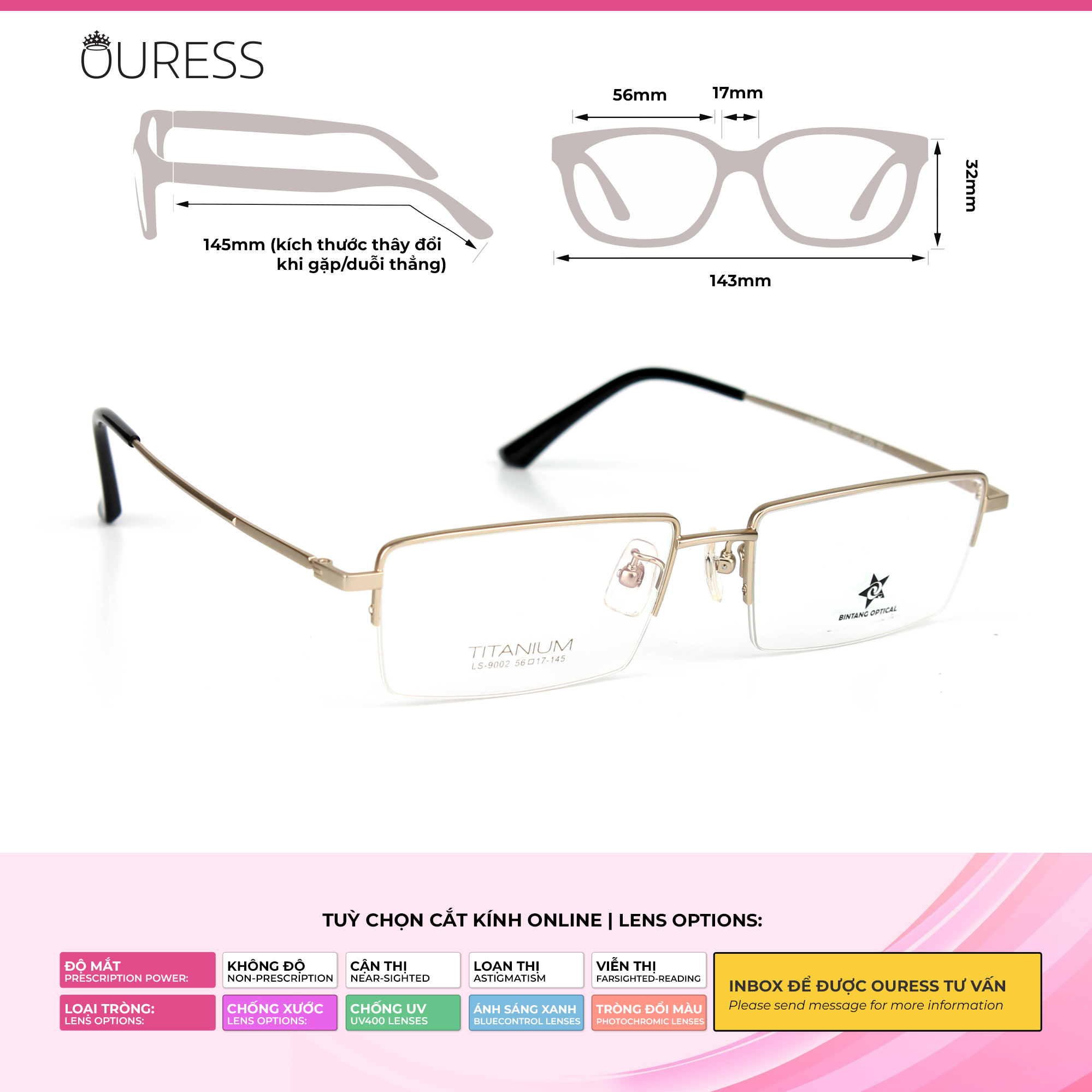 ✨Gọng kính titanium LS9002 nửa khung thời trang nam cao cấp siêu nhẹ siêu bền OURESS
