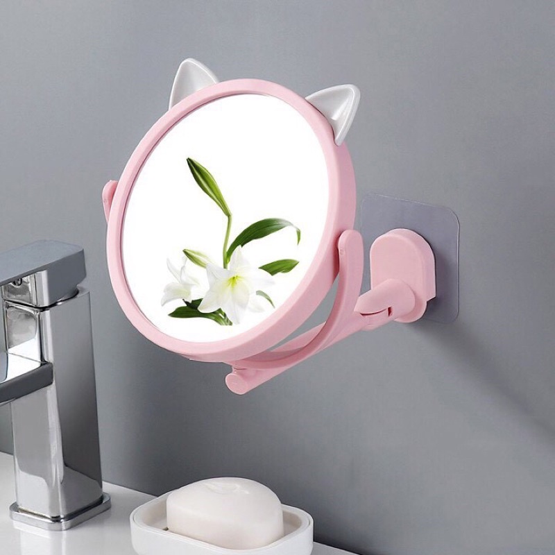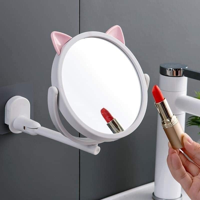 Gương Tròn Tai Mèo Xoay 360 Độ Có Giá Treo Tường Tiện Lợi - 10870