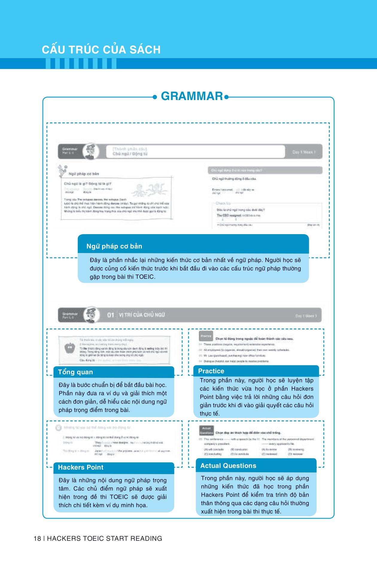 Sách tập trung chú trọng vào luyện kiến thức, kỹ năng chứ không phải chỉ chuyên luyện đề thi TOEIC. Nội dung được chia thành 3 phần rõ ràng như sau: