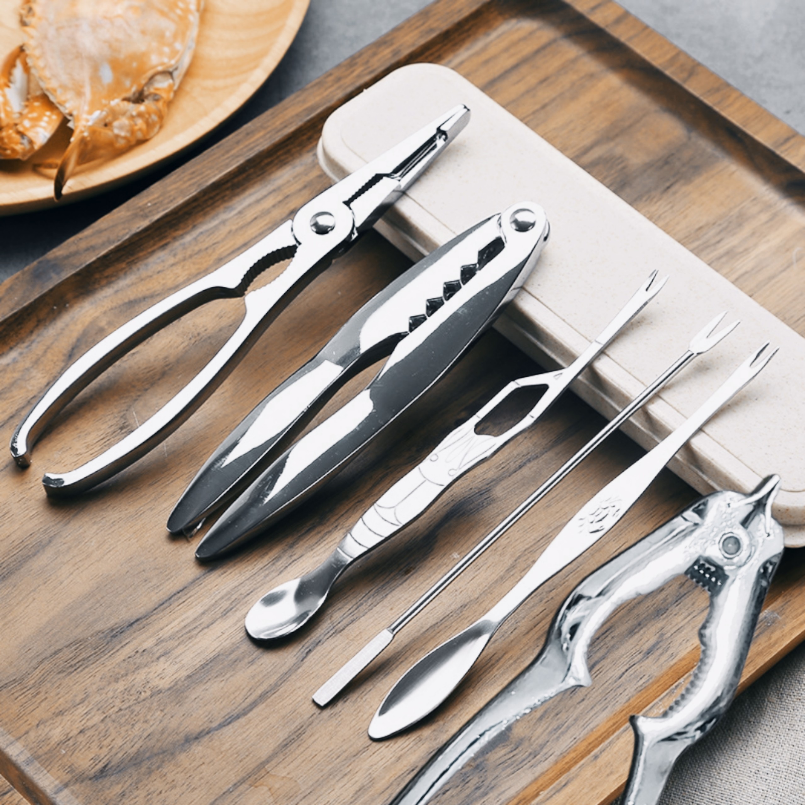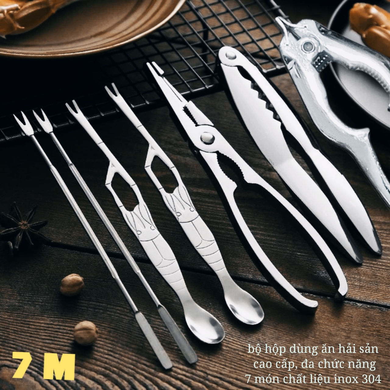 Mua tại TiktokHÀNG CAO CẤP Bộ hộp 7 Dụng Cụ Ăn Cua Ghẹ Sò Ngao Tôm Hùm Hải Sản Đa Chức Năng inox 304