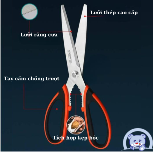 Kéo nhà bếp CUCI GG104 kích thước: 240 mm - Trọng lượng: 98g được làm từ vật liệu inox 420 cao cấp, sản phẩm không chỉ đẹp mắt, chống rỉ sét mà còn đảm bảo độ bền cao và giữ được độ sắc bén lâu dài, giúp bạn dễ dàng cắt các loại thực phẩm mà không gặp trở ngại. Sử dụng cắt thực phẩm, dùng trong nhà bếp, cắt giấy, dùng trong văn phòng, kẹp bóc hạ