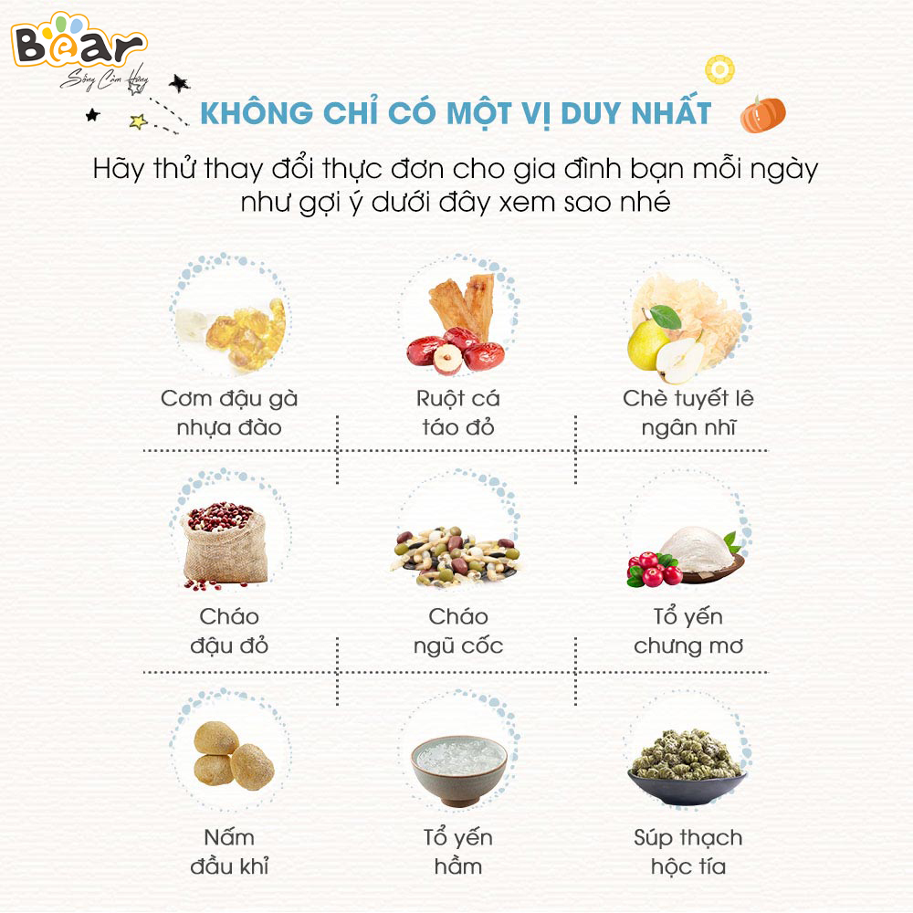Nhiều chức năng nấu tự động Sản phẩm đượ tích hợp nhiều chức năng nấu tự động như nấu cơm, canh, cháo, hầm… cho phép bạn chế biến nhiều món ăn dinh dưỡng cho gia
