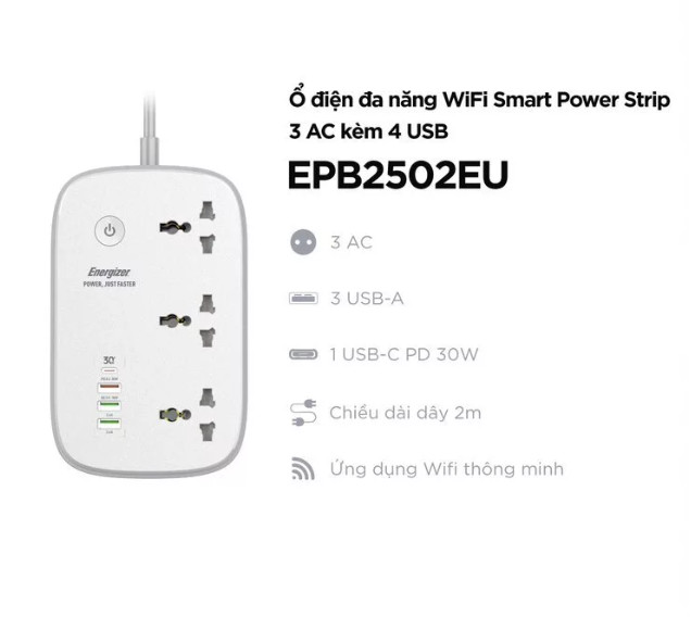 Ổ điện Wifi Energizer 3AC EPB2502EU 30W | Mac Center