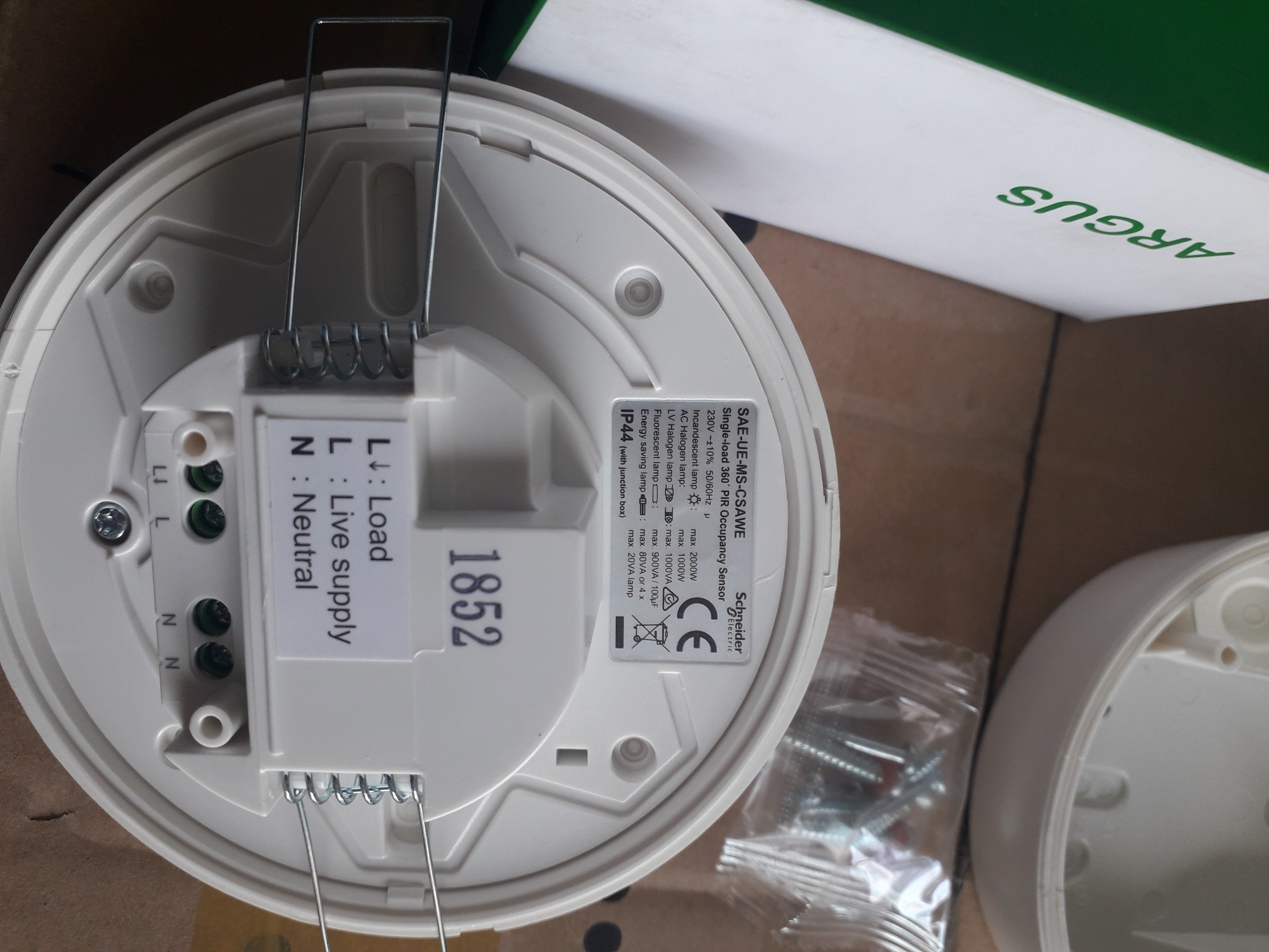 Mua tại TiktokCảm biến chuyển động SAE-UE-MS-CSAWE Với các tính năng ưu việt. Góc phát hiện 360 độ (có thể tùy chỉnh góc). Khoảng phát hiện trong phạm vi 7x7 m. Dòng tải lớn lên đến 1000W, có thể đóng cắt được các đèn cao áp, đèn đường, hoặc động cơ dưới 1000W, Đơn giản lắp đặt (lắp nổi hoặc âm trần). Thông số chi tiết: Điện áp: 230VAC (+/-10%) Góc nhận diện: 360 độ Khu vực phát hiện: 7x7 m chiều cao lắp đặt: 2-3 m Đường kính vùng nhận diện: 111mm Chiều sâu nhận diện: 66mm