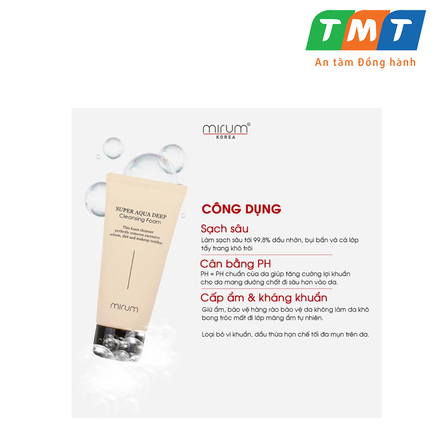 THÔNG TIN SẢN PHẨM Sữa Rửa Mặt Hàn Quốc Tạo Bọt Làm Sạch Và Giữ Ẩm 120ml - Thương hiệu: Mirum - Xuất xứ: Hàn Quốc - Dung tích: 120ml - NSX: In trên bao