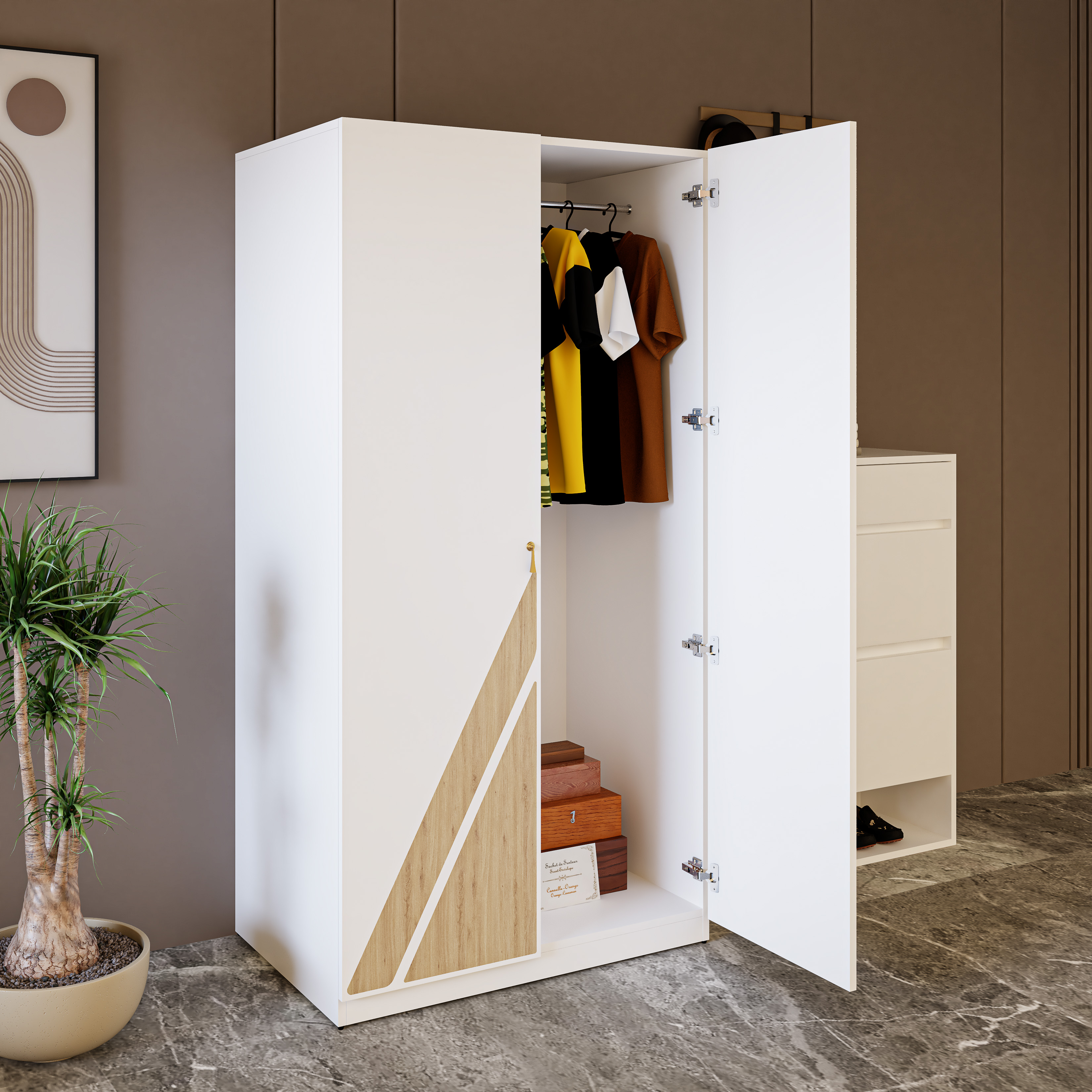 Tủ quần áo gỗ Corey tiếp nối dòng sản phẩm nội thất NHANH – Fast Furniture với phong cách đơn giản sẽ là điểm nhấn nổi bật cho phòng ngủ của bạn. Sản phẩm phù