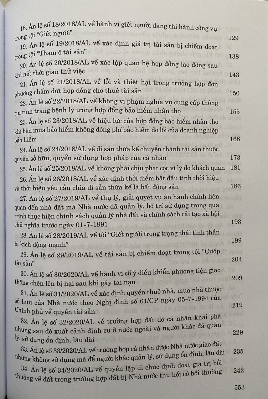 Để thuận tiện cho việc nghiên cứu, tìm hiểu, vận dụng án lệ trong quá trình thực hiện nhiệm vụ xét xử của Tòa án; giúp các cơ quan, tổ chức, cá nhân quan tâm tới hoạt động của Tòa án có thể tiếp cận với các án lệ đã ban hành; tạo nguồn tham khảo cho các hoạt động giảng dạy, nghiên cứu khoa học của các cơ quan, tổ chức, cá nhân, Nhà xuất bản Lao Động cho phát hành cuốn: "Hệ thống Án lệ Việt Nam (Hiện hành) - Từ Án lệ số 01 đến Án lệ số 72".