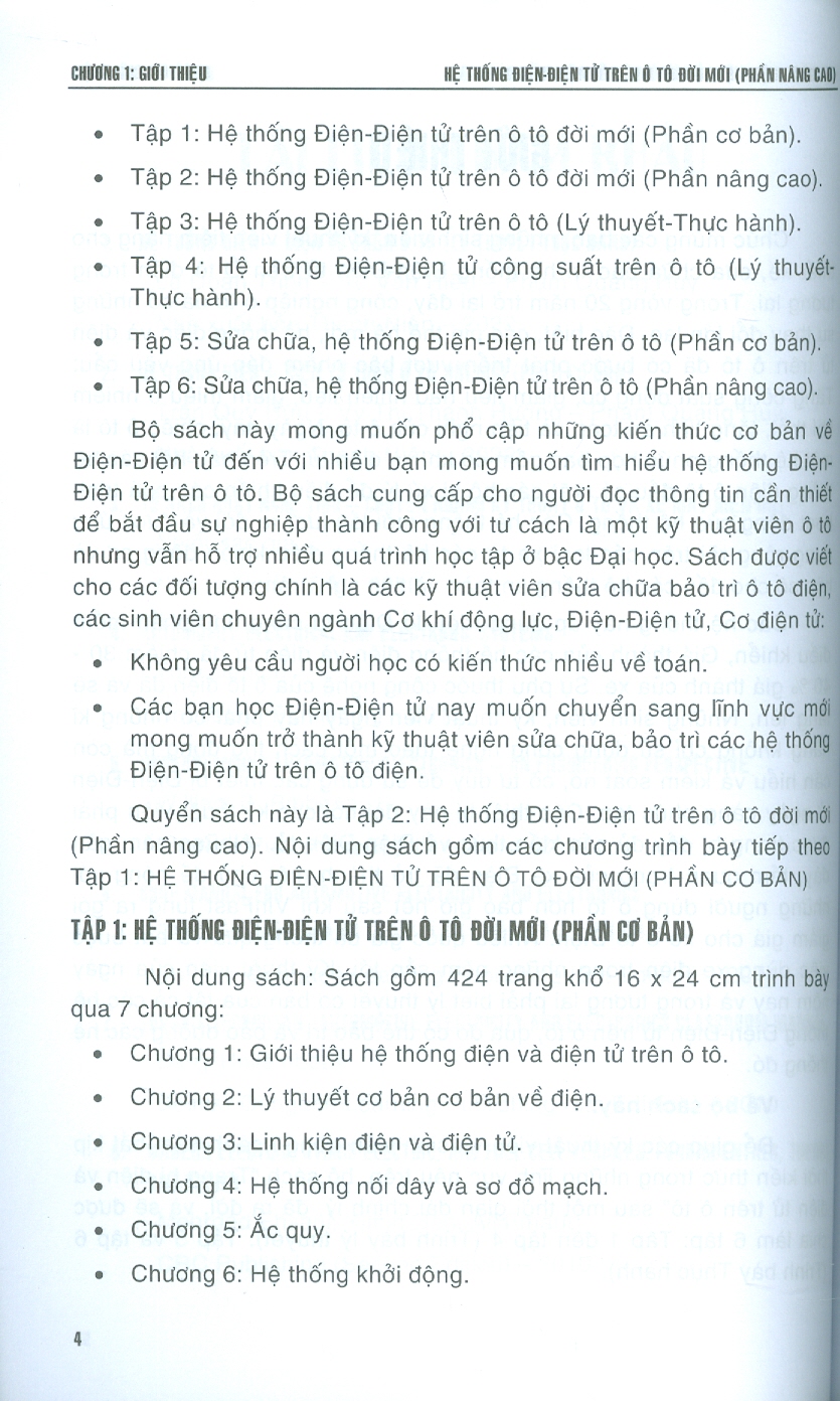 Chẩn Đoán, Sửa Chữa Các Mạch Điện, Điện Tử Trên Ô Tô Bộ sách “CHẦN ĐOÁN, SỬA CHỮA CÁC MẠCH ĐIỆN, ĐIỆN TỬ TRÊN Ô TÔ" gồm 4 tập, trang bị nhiều kiến thức giúp bạn