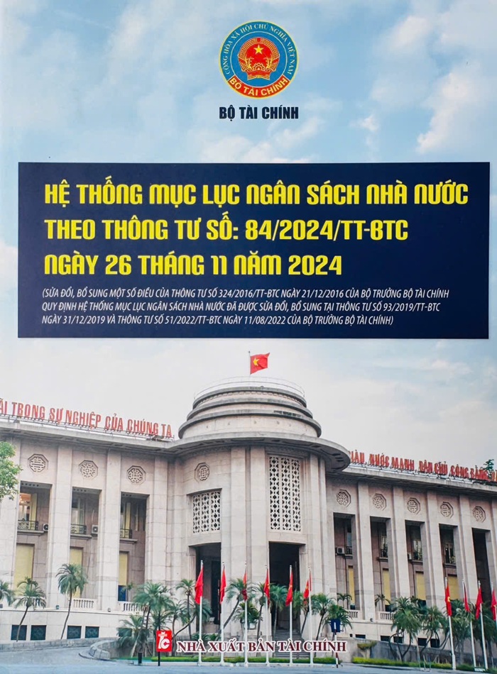 Nhằm triển khai Luật Ngân sách Nhà nước (NSNN) và các quy định mới của Hệ thống Mục lục NSNN được ban hành kèm theo, năm 2017, Nhà xuất bản Tài chính (Bộ Tài chính) đã xuất bản, phát hành ấn phẩm “Hệ thống Mục lục Ngân sách Nhà nước và các văn bản hướng dẫn” gửi đến các cơ quan, đơn vị sử dụng NSNN trên phạm vi toàn quốc. Ngày 26/11/2024 Bộ Tài chính ban hành. Thông tư số 84/2024/TT-BTC ngày 26 tháng 11 năm 2024 (sửa đổi, bổ sung một số điều của Thông tư số 324/2016/TT-BTC ngày 21/12/2016 của Bộ trưởng Bộ Tài chính quy định Hệ thống mục lục ngân sách nhà nước đã được sửa đổi, bổ sung tại Thông tư số 93/2019/TT-BTC ngày 31/12/2019 và Thông tư số 51/2022/TT-BTC ngày 11/08/2022 của Bộ trưởng Bộ Tài chính)