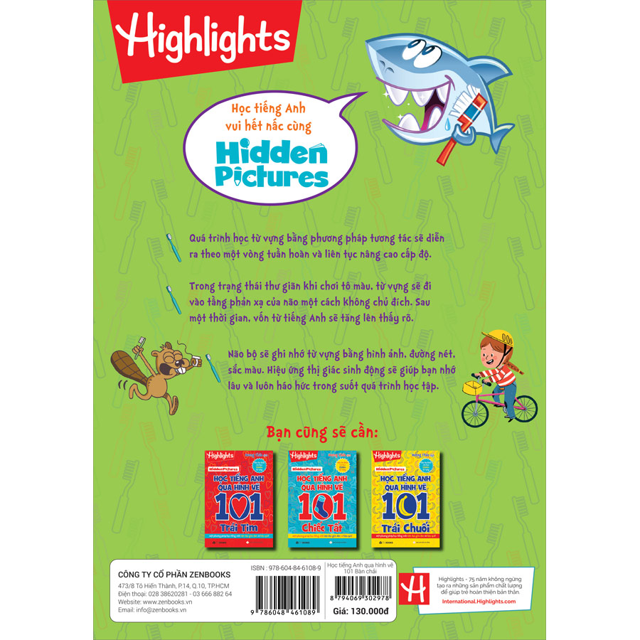 Học Tiếng Anh Qua Hình Vẽ - 101 Bàn Chải Nhà xuất bản : Nhà Xuất Bản Đà Nẵng. Công ty phát hành : ZenBooks. Tác giả : Highlights. Kích thước : 17.8 x 25.4