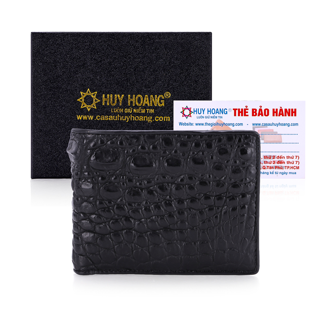 - Bóp nam Huy Hoàng được làm bằng chất liệu da cá sấu cao cấp tạo kiểu dáng lạ mắt, sang trọng.
