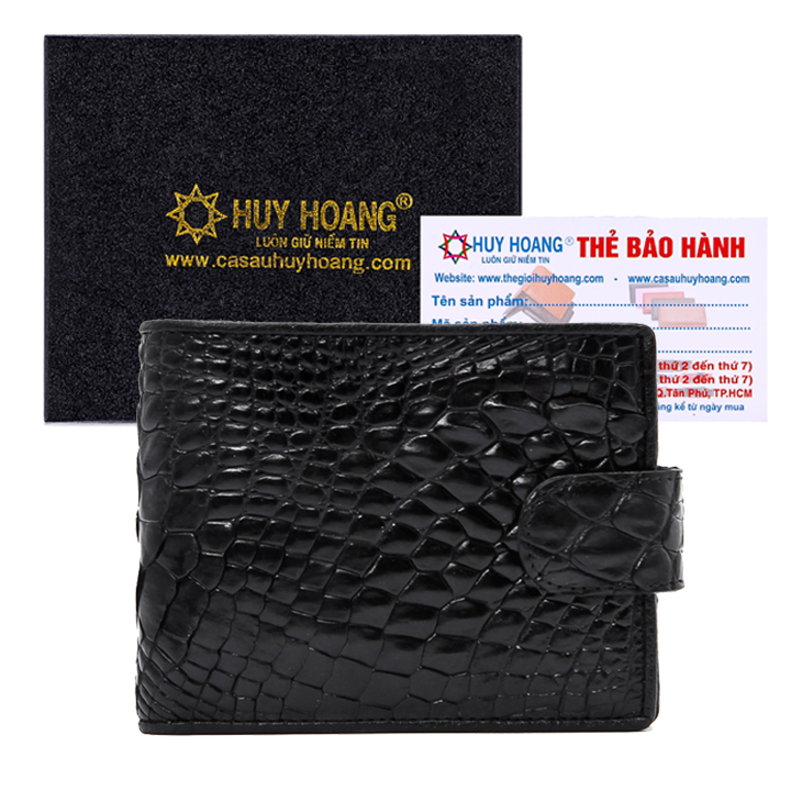 - Bóp nam Huy Hoàng được làm bằng chất liệu da cá sấu cao cấp tạo kiểu dáng lạ mắt, sang trọng.