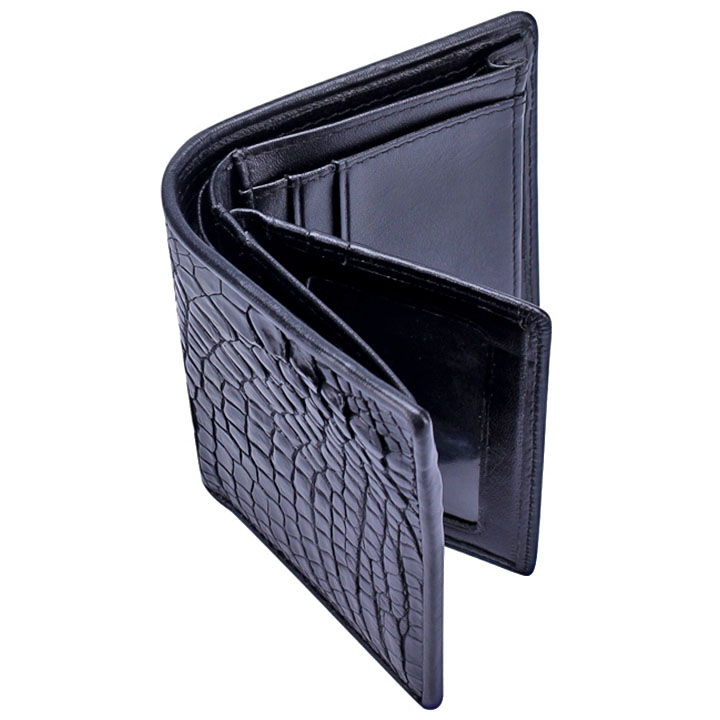 Ví/Bóp nam Huy Hoàng da bò vân cá sấu kiểu đứng màu đen 2120