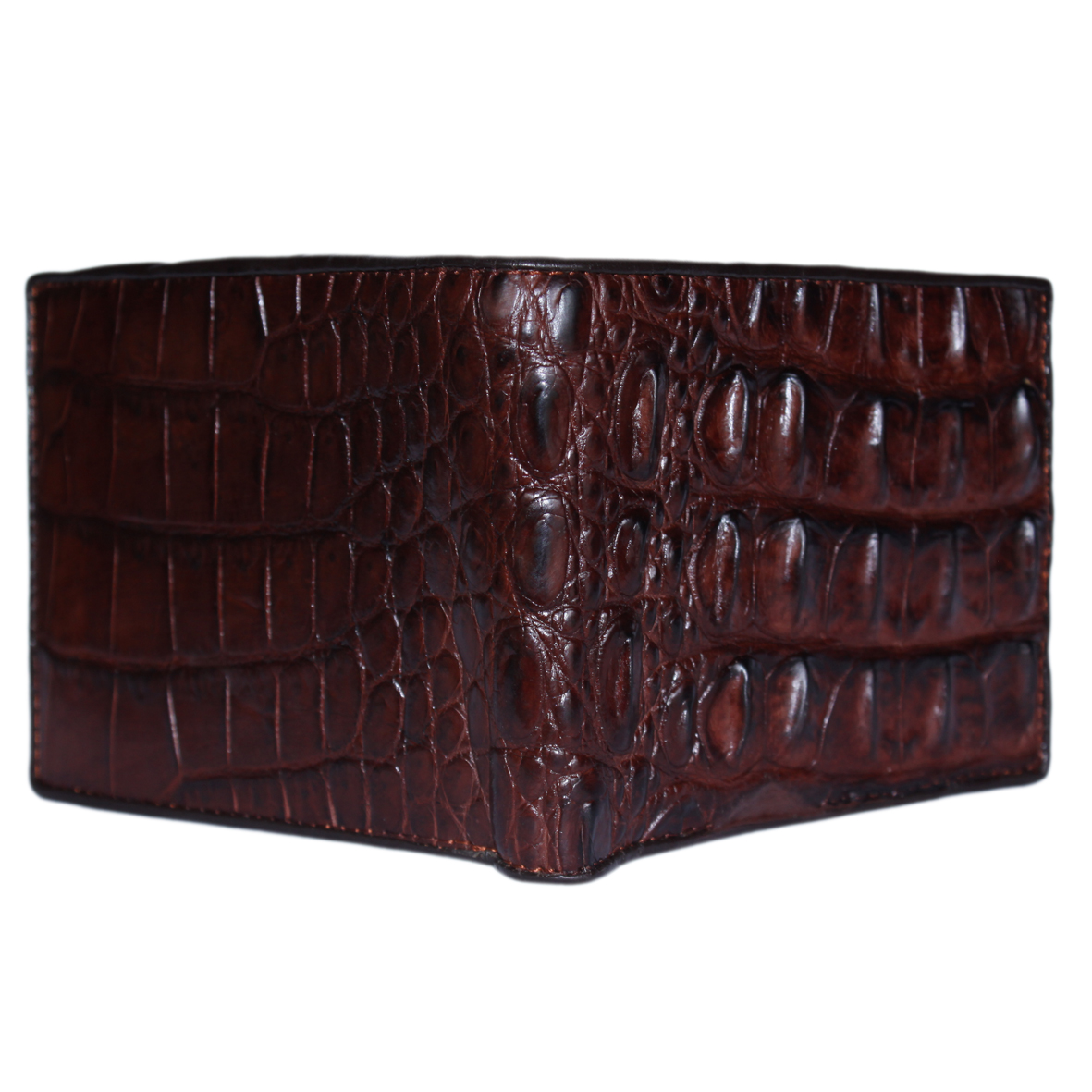Ví/Bóp nam Huy Hoàng da bò vân cá sấu màu nâu đỏ 2148