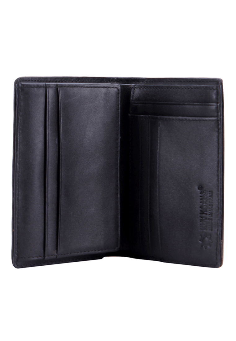 Ví/Bóp nam Huy Hoàng da bò kiểu đứng sọc ngang màu đen 2139