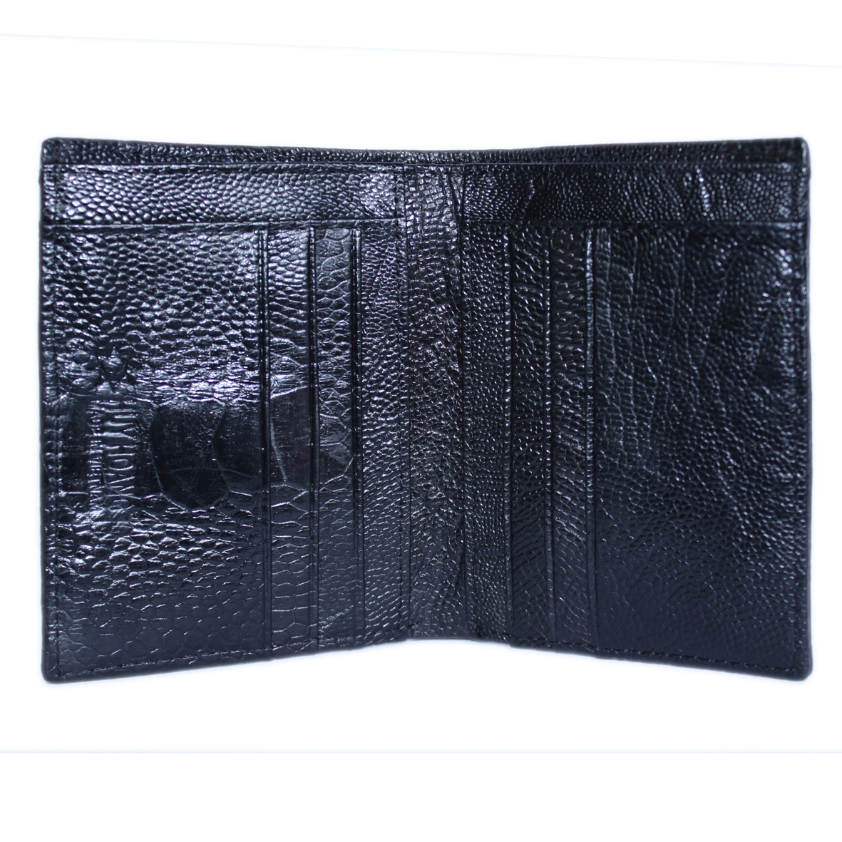 Bóp/Ví da đà điểu Huy Hoàng da bụng kiểu đứng màu nâu đất, nâu đỏ, đen, vàng bò 2408-09-10-18