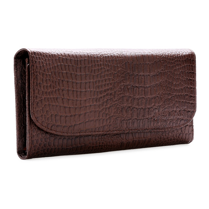 Ví/Bóp nữ da bò vân cá sấu Huy Hoàng 2 gấp màu nâu 3117