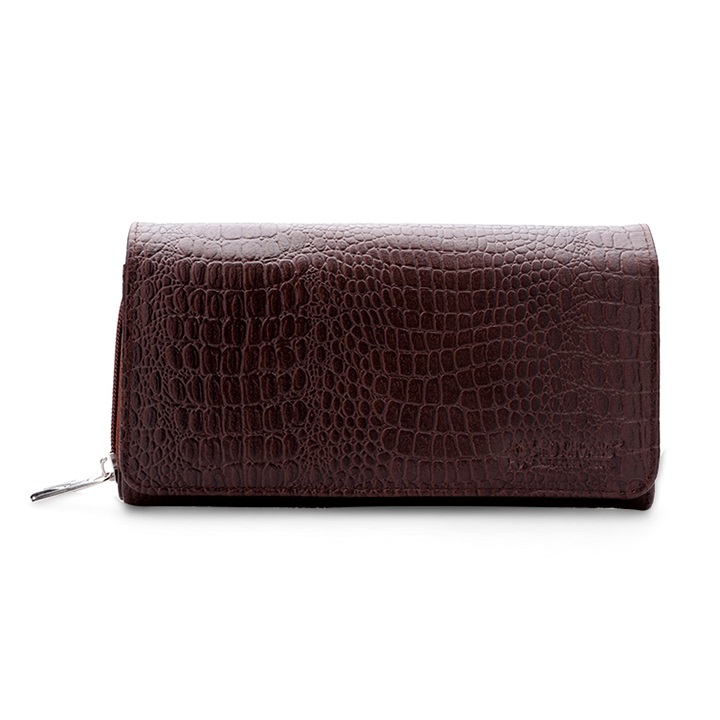 Ví/Bóp nữ da bò Huy Hoàng vân cá sấu lớn 3 gấp màu nâu đỏ 3154
