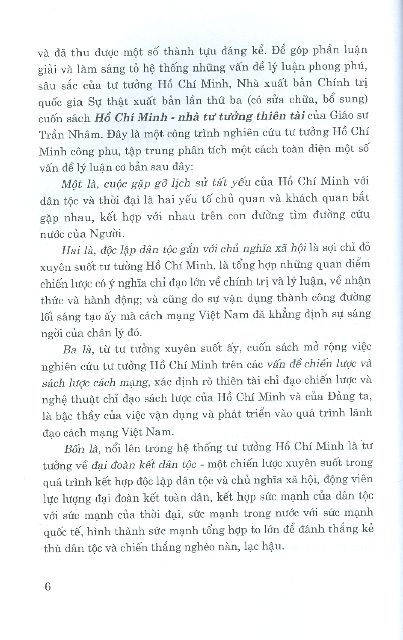 Cuốn sách trình bày những nhận thức của cố Thủ tướng Phạm Văn Đồng - người học trò xuất sắc của Chủ tịch Hồ Chí Minh về quá trình hình thành và nội dung cơ