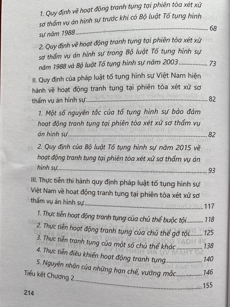 Với mong muốn cung cấp thêm cho bạn đọc tài liệu tham khảo về hoạt động tranh tụng tại phiên tòa hình sự sơ thẩm như một số vấn đề lý luận, thực trạng quy định của pháp luật, thực tiễn tranh tụng cũng như đề xuất các giải pháp nâng cao chất lượng hoạt động tranh tụng tại phiên tòa.