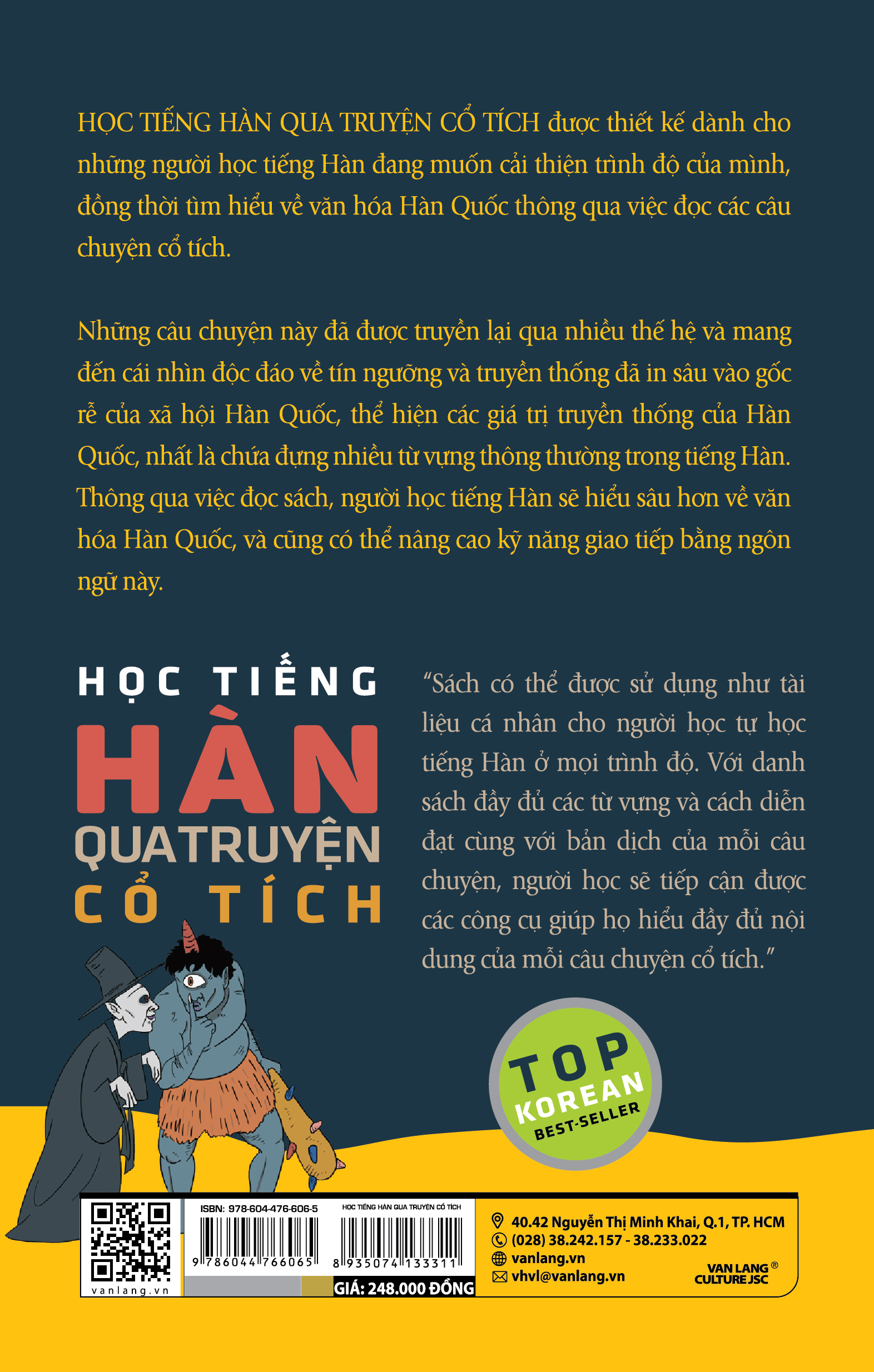 Mua tại Tiktok"Học tiếng Hàn qua truyện cổ tích được thiết kế dành cho những người học tiếng Hàn đang muốn cải thiện trình độ của mình, đồng thời tìm hiểu về văn hóa Hàn Quốc thông qua việc đọc các câu chuyện cổ tích. Những câu chuyện này đã được truyền lại qua nhiều thế hệ và mang đến cái nhìn độc đáo về tín ngưỡng và truyền thống đã in sâu vào gốc rễ của xã hội Hàn Quốc, thể hiện các giá trị truyền thống của Hàn Quốc, nhất là chứa đựng nhiều từ vựng thông thường trong tiếng Hàn. Thông qua việc đọc sách, người học tiếng Hàn sẽ hiểu sâu hơn về văn hóa Hàn Quốc, và cũng có thể nâng cao kỹ năng giao tiếp bằng ngôn ngữ này. "