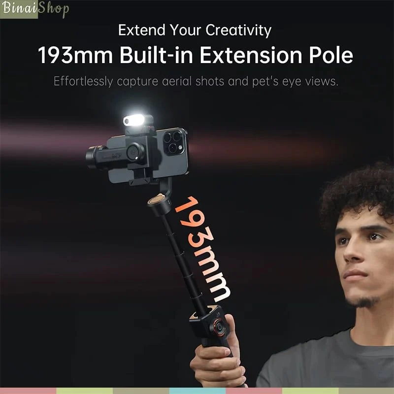 - Mở rộng sự sáng tạo với gậy nối dài 193mm và thiết kế 3 trục động cơ mạnh mẽ, khả năng xoay ngang 360° và phạm vi nghiêng rộng 325° mang đến chuyển động mượt mà từ mọi góc nhìn, ngay cả ở góc cực thấp.
