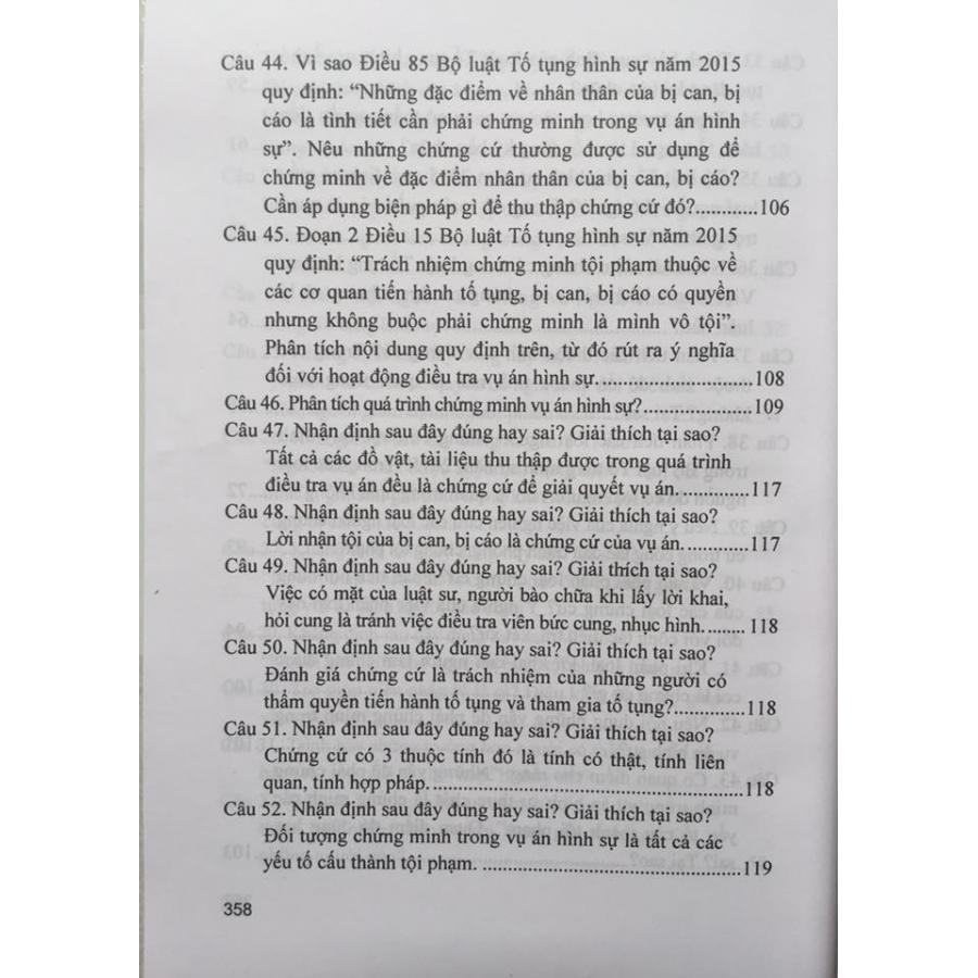 Mua tại TiktokHỏi - đáp luật tố tụng hình sự năm 2015 Tác giả: TS Phạm Thị Thoa - Học viện cảnh sát nhân dân (Chủ biên) NXB công an nhân dân Khổ 14,5 x 20,5 cm, Số trang : 376 Giá bìa: 99.000 đ