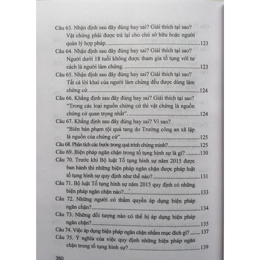 Hỏi - đáp luật tố tụng hình sự năm 2015 Tác giả: TS Phạm Thị Thoa - Học viện cảnh sát nhân dân (Chủ biên) NXB công an nhân dân Khổ 14,5 x 20,5 cm,